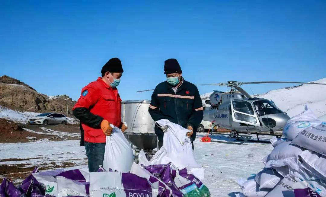 3月1号,记者在石梯子乡东沟村草场看到,工作人员正在往飞机承载的播种器具里添加牧草种子,准备就绪后,飞机缓缓飞向空中,牧草种子洒向草场。