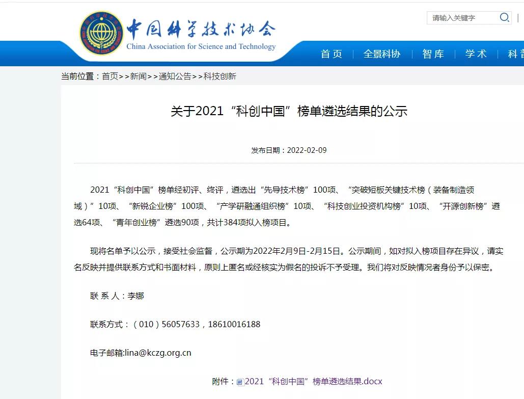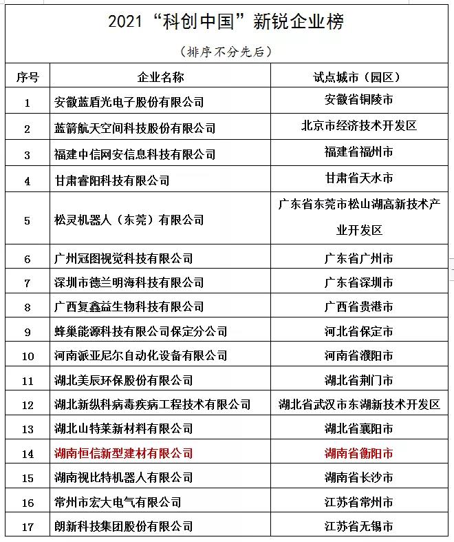 2021“科创中国”榜单遴选结果公示,我市衡山县这家企业入榜