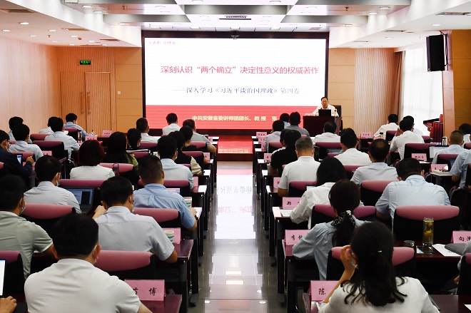 培训期间,省委讲师团团长张彪深入分析了学习贯彻《习近平谈治国理政》第四卷的重大意义,重点阐述了《习近平谈治国理政》第四卷的主要内容与核心要义。省委党校(安徽行政学院)副校(院)长江观伙教授、教育长邵明教授、朱广其教授、光娅副教授和段兴权副教授结合自己的研究,分别讲授了习近平新时代中国特色社会主义思想概论,习近平总书记关于意识形态工作的重要论述,习近平新时代中国特色社会主义经济思想,习近平总书记考察安徽重要讲话精神和关于全面从严治党的重要论述等课程。