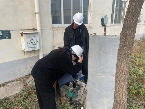 联合勘验科工作人员在接收材料后为不影响企业正常的用水需求,第一时间与水利局有关专家取得联系,初步确定现场勘验时间,同时与企业沟通确定最终勘验时间及勘验地址。在勘验现场,工作人员对该企业的取水水源类型、取水方式及用途、年取水退水量、退水地点、取水计量设施情况及相关政策落实情况进行逐项核实。核查内容包含水井数量、坐标、井深、井径;水泵型号、功率、扬程、口径;所用超声波流量计的型号、常用流量、精度等级;取水用途、年取水量及退水量等。通过仔细核查对照每一项标准,并现场为企业详细解答和指导,努力为企业服好务。