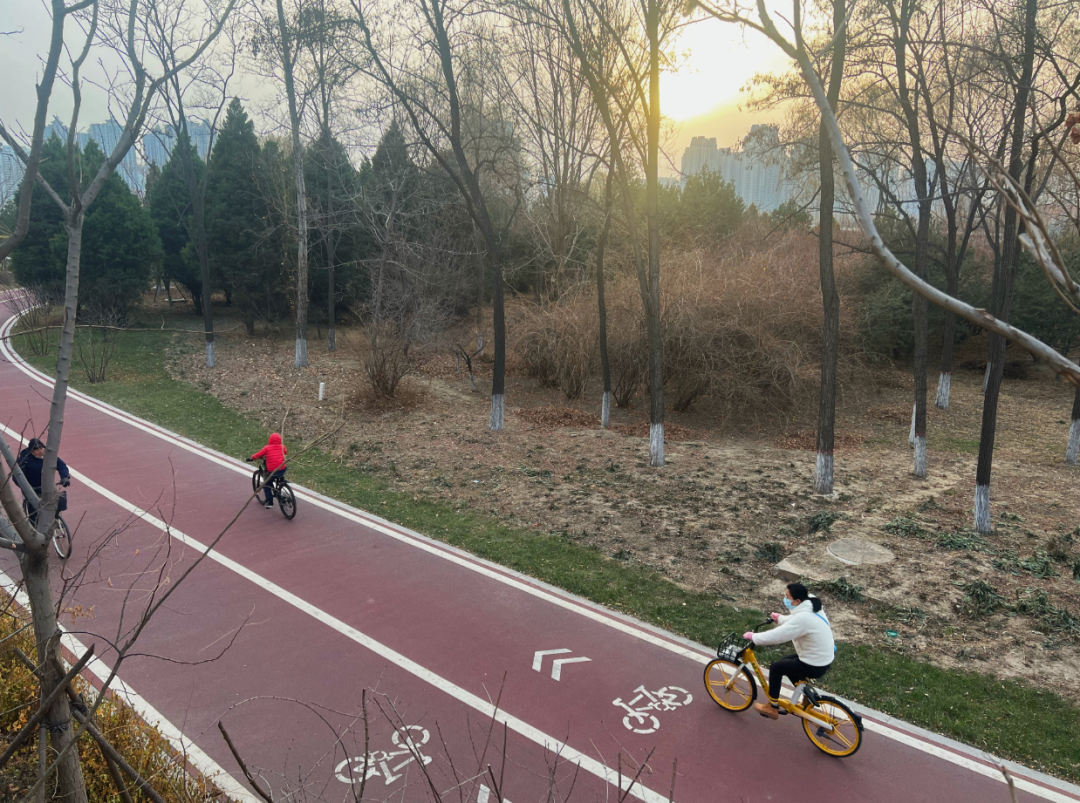 ▲南内环桥的滨河自行车道,人们快乐骑行