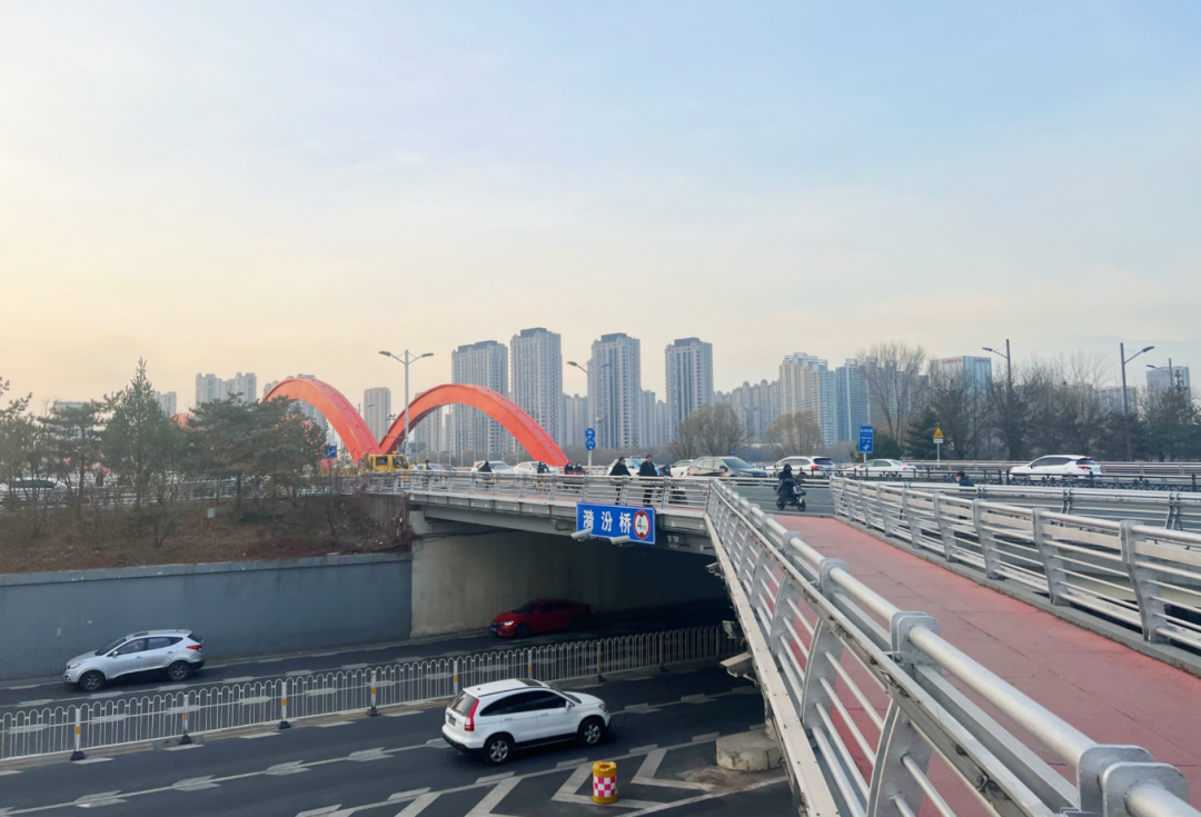 ▲滨河东路上,南来北往的车辆穿过漪汾桥