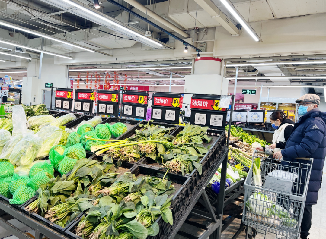 ▲小店区长风大街一家大型超市,顾客选购生活物资
