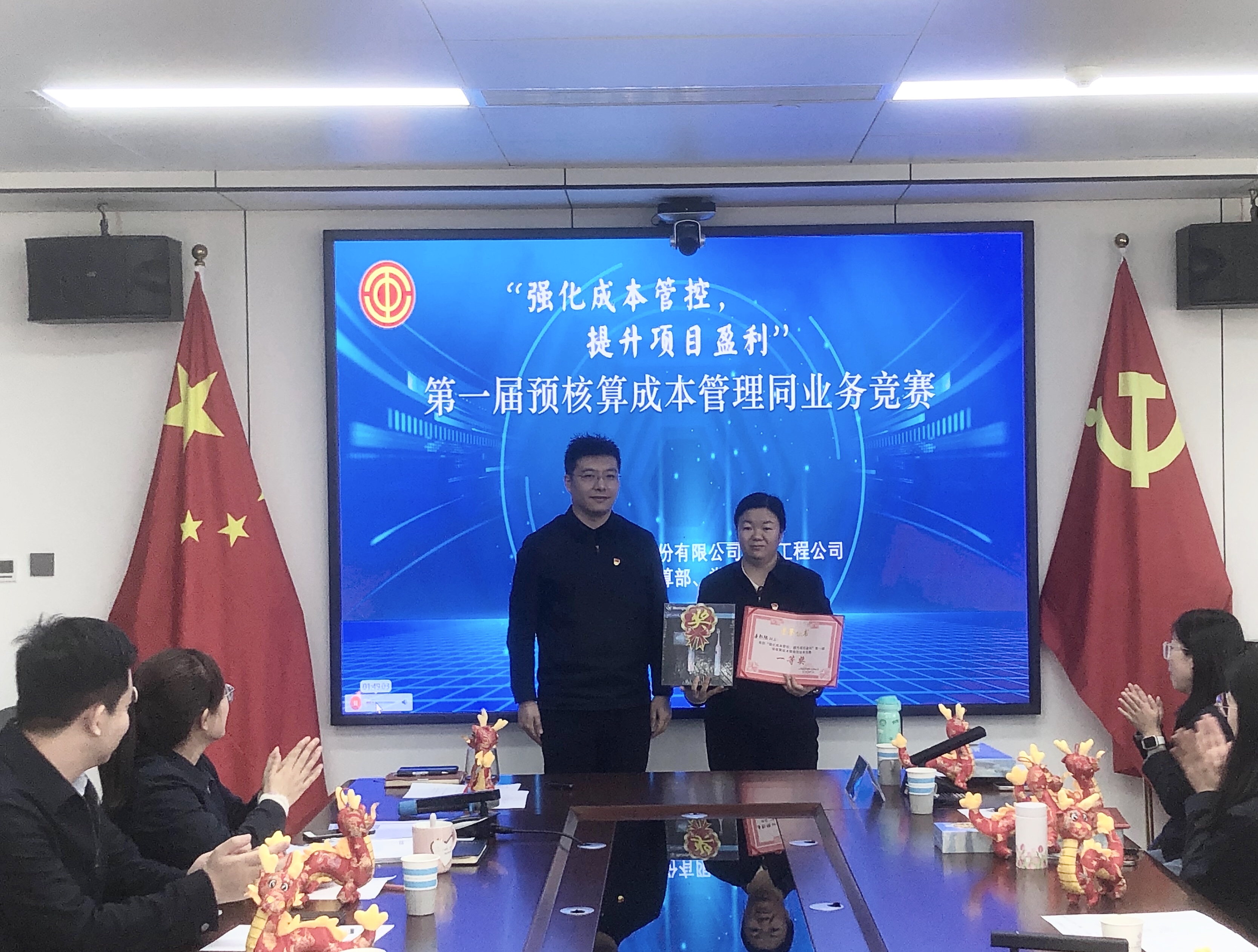 党支部副书记、副总经理奥云军作总结讲话,并对获奖团队及个人表示祝贺。他指出,开展同台竞技比武知识竞赛,是提高工程公司预核算人员整体成本管理水平,培养职工成本意识和分析管控能力的重要途经,也是党建与生产经营深度融合的具体体现。通过本次知识竞赛,让大家收获了知识,认识到存在的问题和不足,对提升自身专业技能、业务水平起到推进作用。同时,各参赛选手的奋勇争先、才思敏捷,既展示了团结、拼搏、进取的精神风貌,又积极营造了“比、学、赶、帮、超”的良好氛围。今后,工程公司将继续探索各种方式方法,为各专业人员提供学习和交流的平台,积极助推广大职工提升综合素质,激发创新思维,拓宽知识视野,提高各项工作能力。