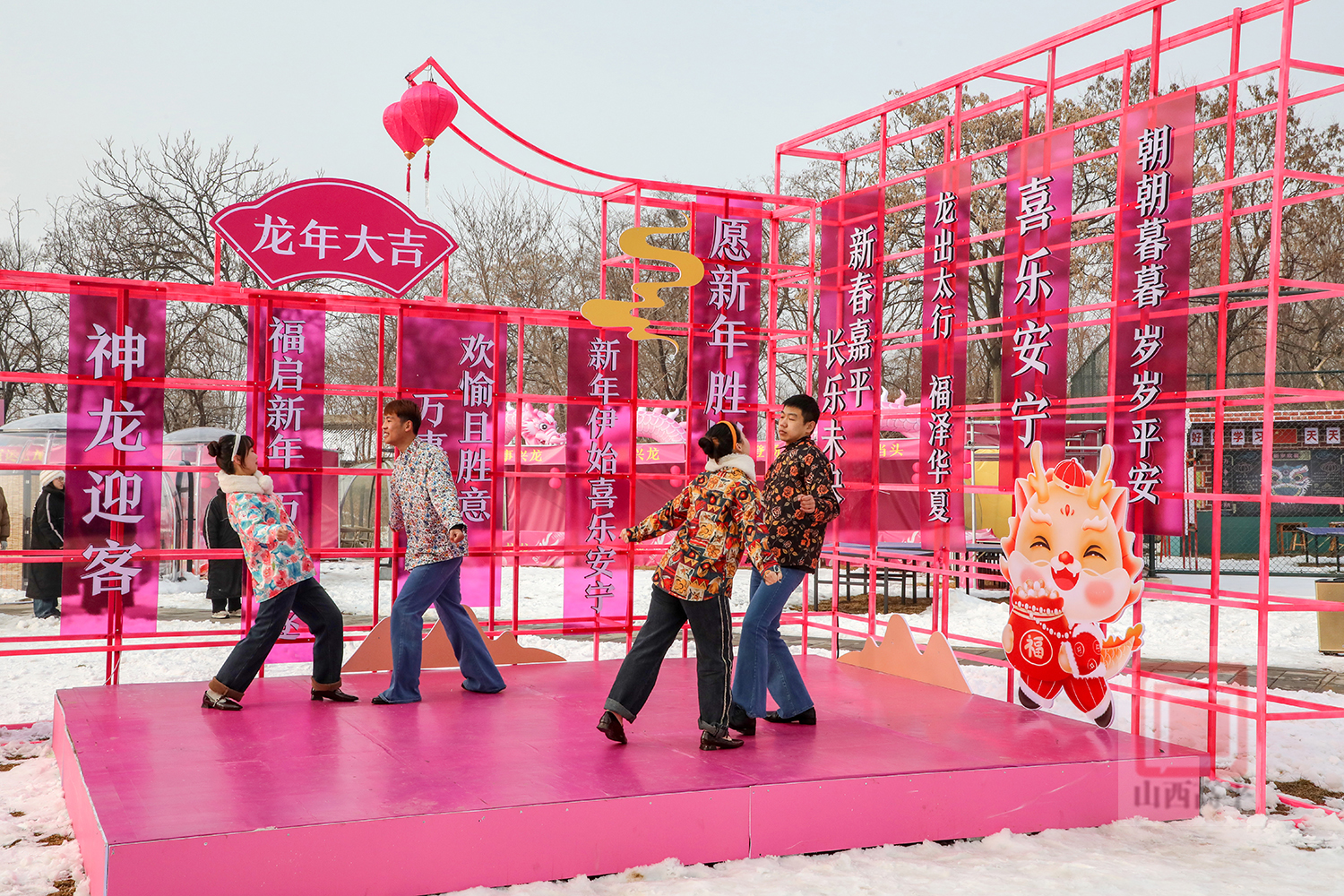 游客秦亚楠说:“趁着春节放假这几天出来逛一逛,景区人很多,也很热闹,民俗文化、民俗表演丰富多彩,让我感受到了红火热闹的过年氛围。”