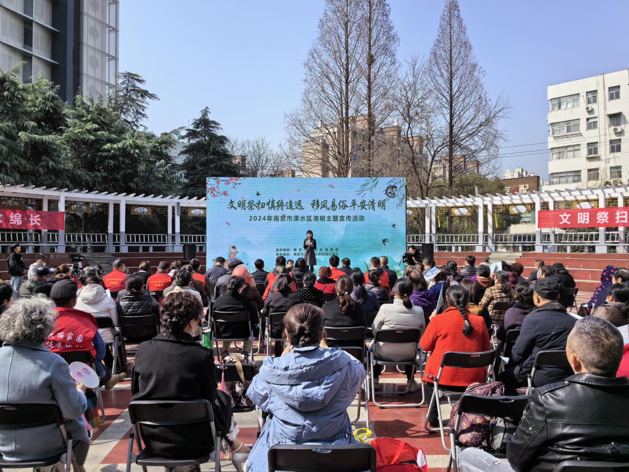 清明将至,为传播文明新风,弘扬绿色、生态、平安的殡葬新风尚。3月19日,南京市溧水区举办了“文明祭扫慎终追远?移风易俗平安清明”2024年清明主题宣传活动。南京市溧水区人民政府党组成员刘人祥,溧水区民政局党组书记查春华,溧水区民政局副局长任坤祺以及溧水区各镇街分管领导、各社区殡葬工作联络员和社区居民代表等100多人参加了活动。