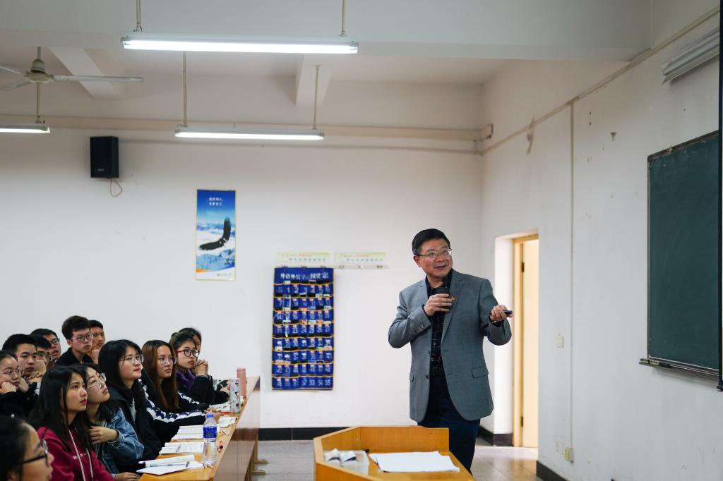 罗嗣海分别在主教楼301和西校区教学楼1202听取了建测学院曾伟老师的《钢结构设计》课程和刘国和老师的《思想道德修养与法律基础》课程。课上,同学们跟着老师的授课思路,认真听讲深入思考,积极回答提问。罗嗣海坐在同学中间边听边记。