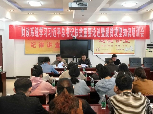 会议针对财政系统当前扶贫工作形式,对习总书记扶贫重要论述、国家脱贫攻坚有关政策、乡镇财政财务管理存在的主要问题讲解政策建议、扶贫项目评审内容流程、学习“绿色通道”有关政策、扶贫资金和扶贫项目管理、健康扶贫、教育扶贫、就业扶贫等知识进行的全面详细的讲解。